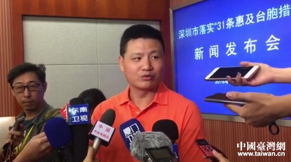 臺盟深圳市委會委員鄭春雨接受記者采訪。(圖片來源:中國臺灣網)
