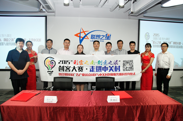 2015年9月24日,由云南省工商行政管理局主辦,昆明國家廣告產業試點園區管理委員會與聯想融科云南公司承辦的2015年“彩云之南,創意之滇”創客大賽走進中關村主題活動,暨昆明國家廣告產業試點園區創業政策與優秀創業項目路演推介會,在中關村創業大街聯想之星隆重舉行。