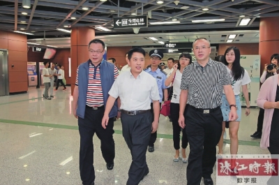 當(dāng)日下午13:30許,在廣佛地鐵公司總經(jīng)理鐘銓等陪同下,黃志豪一行首先到桂城地鐵站,并在該站乘列車直至廣州。