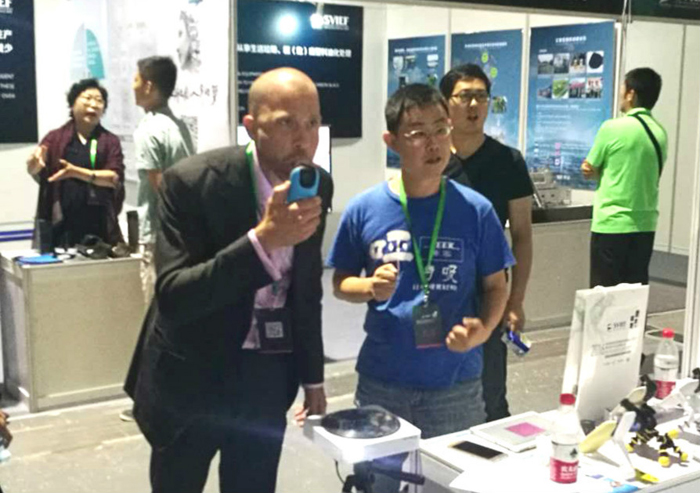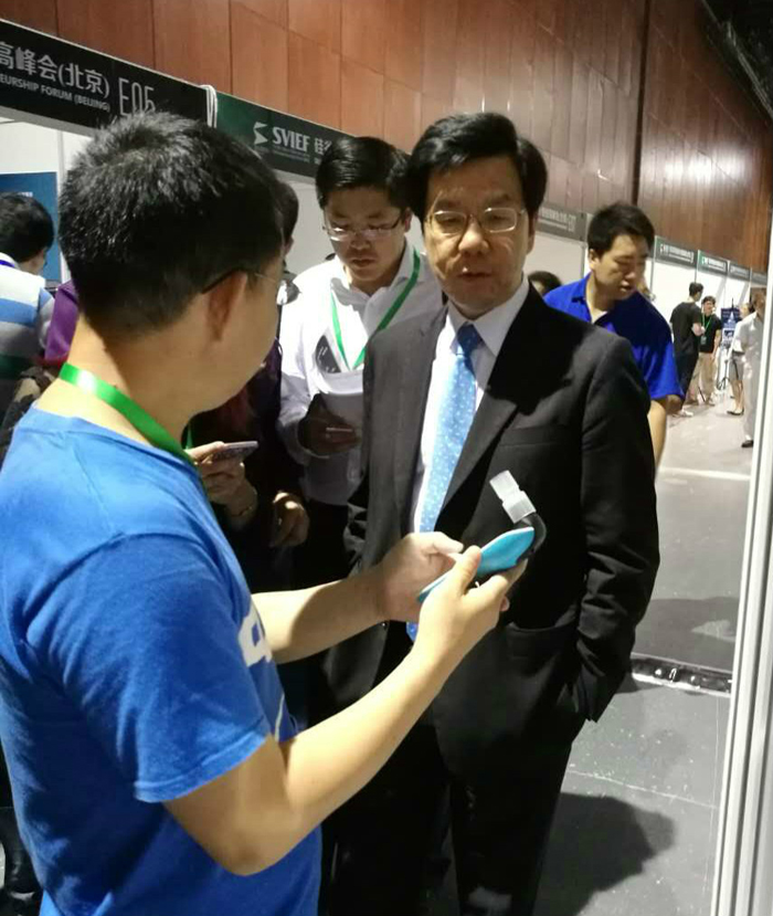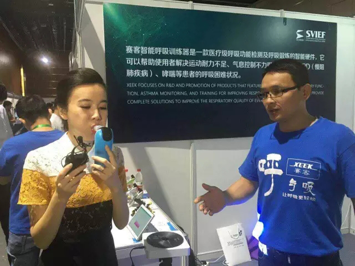 活動當天,創新工場董事長兼首席執行官李開復博士走到賽客團隊展臺前,了解這款智能呼吸訓練器。賽客創始人何明軍向李開復博士介紹了智能呼吸訓練器的主要功能、使用方法等,獲得了認可。此外,英特爾高管、眾多投資人、媒體記者等,也紛紛來到賽客展臺前,了解設備,現場體驗智能呼吸訓練器。