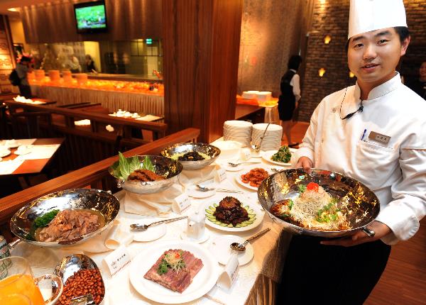 A chef from the Chinese mainland shows traditional dishes of Yangzhou flavor at the branch restaurant of the Yechun Tea Society in Taipei of southeast China's Taiwan, Sept. 3, 2010. The Yechun Tea Society, a time-honored restaurant of Yangzhou City of east China's Jiangsu Province, opened a branch in Taipei on Friday. As Chinese mainland's first solely-invested restaurant in Taiwan, it will bring famous dishes of Yangzhou to Taiwanese customers. (Xinhua/Wu Ching-teng)