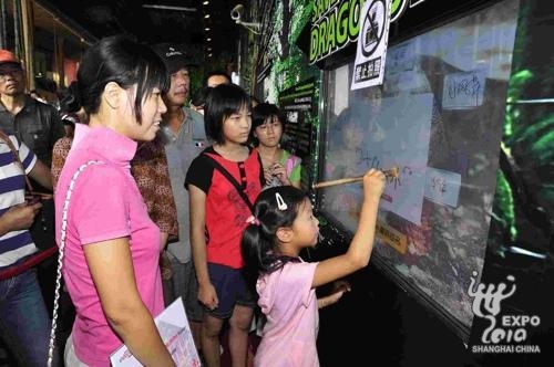 The girl won two round-trip tickets for Shanghai – Jakarta -- Batam -- Bintan Island, Indonesia, three-day-two-night accommodation including meals at a five-star hotel in Jakarta and free meals for two at Enak! Restaurant inside the pavilion. The pavilion’s director Widharma Raya and Mari Pangestu, the Minister of Trade of Indonesia, presented the gifts to her.