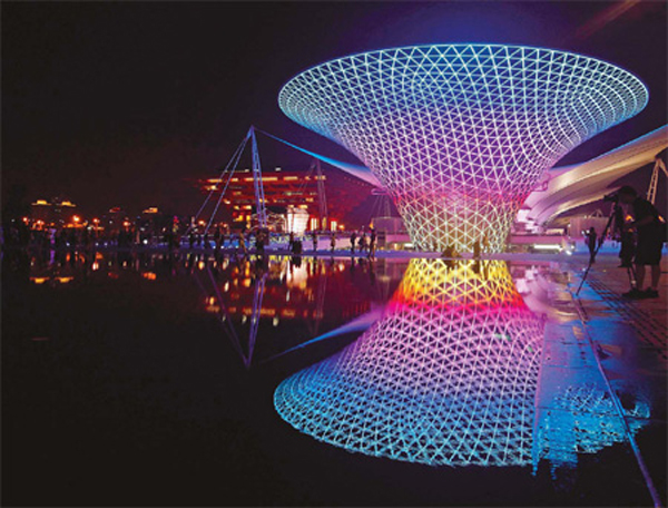 Bright lights and a full moon herald the Mid-Autumn Festival at the Expo. (Source: China Daily/Yong Kai)