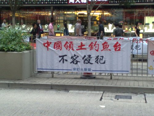 資料圖:香港街頭的保釣標(biāo)語橫幅