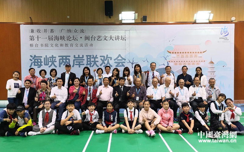 兩岸嘉賓在福州中山小學室內籃球場開展聯誼活動合影。(中國臺灣網發)