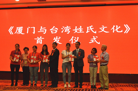 6月14日晚,第十一屆海峽論壇·海峽兩岸青少年中華姓氏源流知識競賽開幕式在廈門華僑大廈(大酒店)舉行。來自海峽兩岸的參賽選手、觀摩師生以及兩岸民間社團嘉賓參加了開幕式暨歡迎晚宴,相關單位領導蒞臨現場。廈門市姓氏源流研究會會長陳淑娥、臺灣姓氏研究學會榮譽理事長林培圣、金門宗族文化研究協會理事長葉鈞培、臺灣中華國際觀光協會理事長詹秀蓉分別致辭,廈門市政協副主席陳昌生對大賽的成功舉辦給予美好祝愿。開幕式上,《廈門與臺灣姓氏文化》一書首發儀式舉行,海峽兩岸民間社團互贈紀念品。
