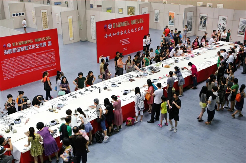 本屆論壇以“家庭和諧、藝術綻放”為主題,舉辦和諧家庭文化論壇、海峽和諧家庭文化藝術展、兩岸女藝術家共繪海峽美景書法筆會,來自兩岸多個文化藝術協會的60余名女藝術家舉行書畫筆會聯袂創作題為《美好家園》的百米書畫長卷。