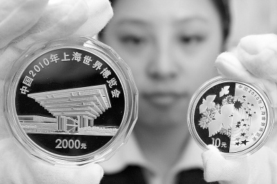 上海世博會(huì)第二組彩色金銀紀(jì)念幣。新華社發(fā)(陳代述攝)