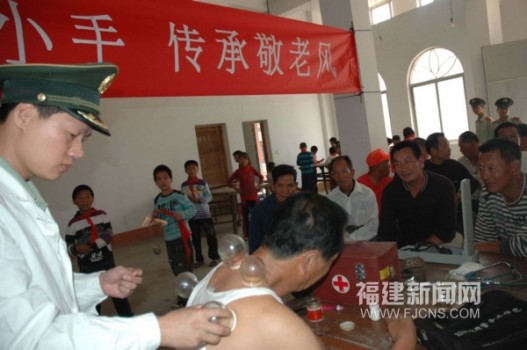 中國傳統(tǒng)的敬老節(jié)--“九九重陽節(jié)”到來前夕,10月25日,福建省福清南青嶼邊防派出官兵聯(lián)合近百名船舶?慨(dāng)?shù)卮a頭的臺胞、當(dāng)?shù)匦W(xué)生一起開展了“大手牽小手 傳承敬老風(fēng)”歡慶重陽節(jié)活動。當(dāng)日上午,邊防官兵與20余名小學(xué)生及10多名臺胞到當(dāng)?shù)毓鹿牙先思依镌捈议L、量血壓、包餃子、煮壽面等活動歡慶重陽節(jié),受到了老人們的熱烈歡迎。(孫旭暉 連仁良)