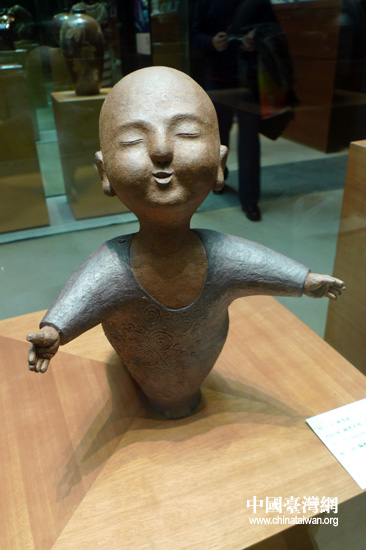 參展藝術品陶藝《筑夢》(中國臺灣網李徽攝)