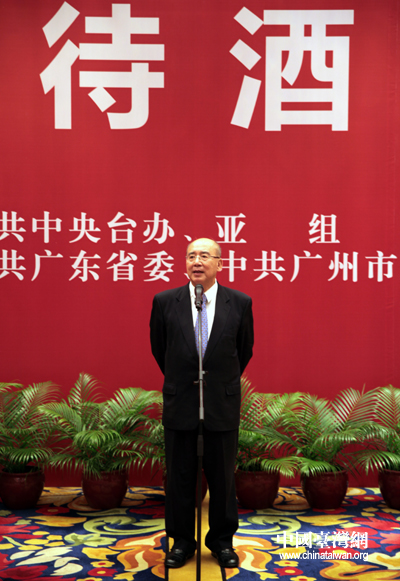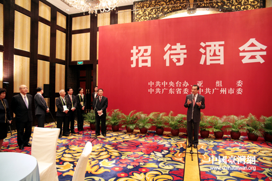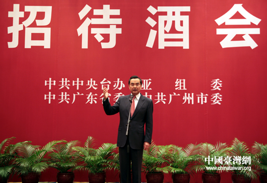 11月11日,中共中央臺辦與廣州亞運會組委會、廣東省委、廣州市委共同舉辦招待酒會,歡迎前來出席廣州亞運會開幕式的臺灣各界嘉賓。圖為中共中央臺辦王毅主任在招待酒會上致辭。(中國臺灣網(wǎng) 鐘寶華 攝)