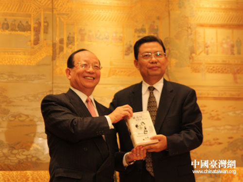 18日晚上,國(guó)臺(tái)辦主任王毅、陜西省委書(shū)記趙樂(lè)際在西安會(huì)見(jiàn)了中國(guó)國(guó)民黨副主席蔣孝嚴(yán)率領(lǐng)的臺(tái)灣企業(yè)界、工商界代表一行。(中國(guó)臺(tái)灣網(wǎng) 肖燕 攝)