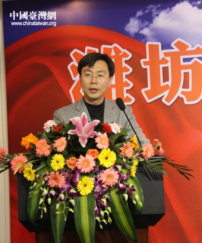 2010年4月19日晚間,魯臺教育交流中心在山東省濰坊市正式成立,濰坊市副市長王桂英和臺灣海峽兩岸教育交流促進會理事長李超群共同為該中心揭牌。(中國臺灣網 楊永青 攝)