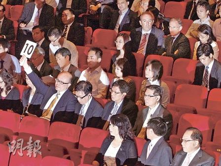 昨日賣地歷時40分鐘,共47口價,由4個財團包括新世界、信和、南豐及一個派出職員作代表的財團競逐。拍賣開價80億元,承價至82億元,拍賣官已開始倒數“第一次”,不再說此叫價尚未到達底價,反映82億元甚可能已達到或超出政府秘而不宣的底價,若按104億元成交價計,估計高出政府底價約27%。