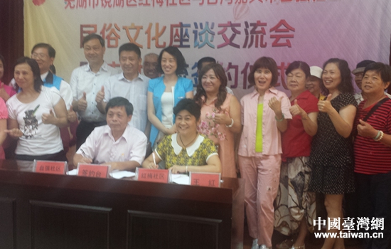 參訪期間,雙方就社區服務管理、文化建設,分別在鏡湖區汀棠服務中心紅梅社區、弋江區澛港街道匯成社區分別開展了民俗文化交流會,搭建了社區服務管理、文化建設合作交流平臺。連續5次當選為里長的蔡正平團長,對我市建設發展和社區建設深表嘆服、贊不絕口,感到收獲很大,有不少值得學習借鑒的地方。市臺辦主任鄭鋒連忙接話說,兩岸血脈相連、文化相通,蕪嘉兩地基層民眾要多交流、多溝通,常來常往,增進相互了解、消除心理隔閡,相互借鑒學習、促進共同發展。(中國臺灣網蕪湖市臺辦通訊員 戴秀武)