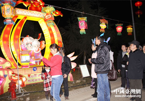 中國臺灣網2月25日黃石消息 日前,以“和諧良宵”為主題的2011年貴州省貴陽市元宵燈會在金陽觀山湖公園舉辦,五光十色的各類彩燈吸引了數萬名市民游園觀賞。其中,“筑臺一家親”燈組在眾彩燈中脫穎而出、備受矚目。