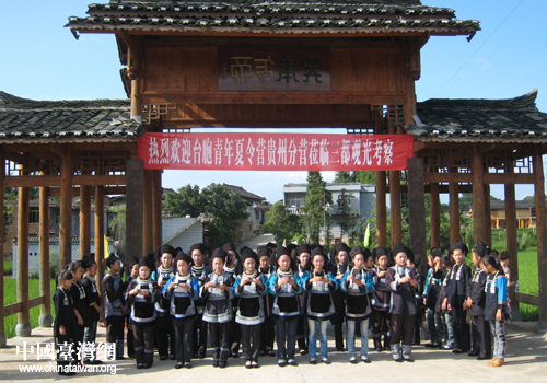 中國臺灣網7月19日三都消息 日前,臺胞青年千人夏令營的青年學生們來到三都族自治縣的水各村。在這里,青年學生們感受到了濃郁的水族風情的迎賓客的禮儀和方式。