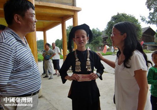 中國臺灣網7月20日黔南消息 日前,受臺灣學子廖國隆的委托,貴州省臺聯會長邱培聲、副巡視員周飛月,去到三都水族自治縣水各村看望水族姑娘初一學生吳大猜,發給助學金300元人民幣,鼓勵吳大猜好好讀書,不要辜負廖國隆的期望。