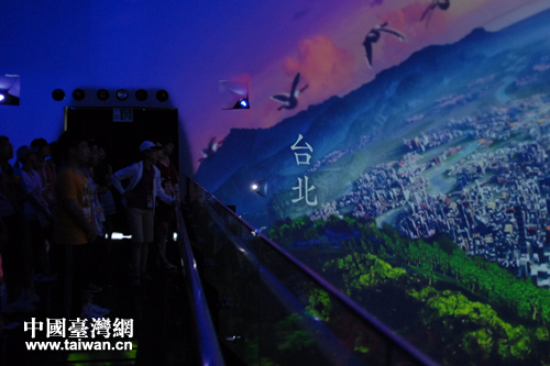 上海中學生在臺灣館內觀賞全天域球幕電影。(圖片來源:上海市臺聯)
