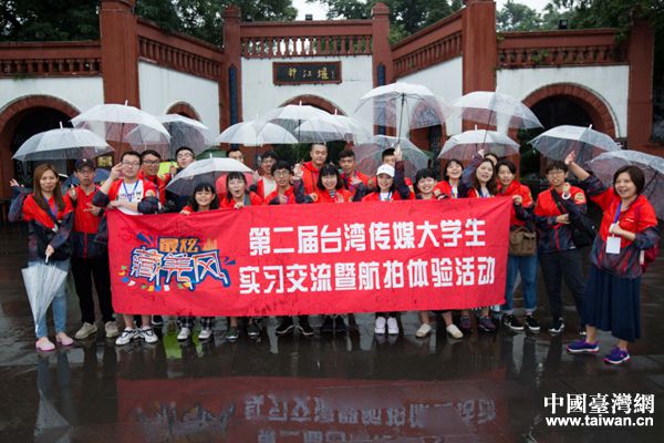 川臺學子在都江堰合影留念。(圖片來源:四川省臺辦)