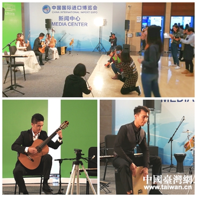 進博會新聞中心正在上演音樂演奏節目。(圖片來源:上海市臺辦)