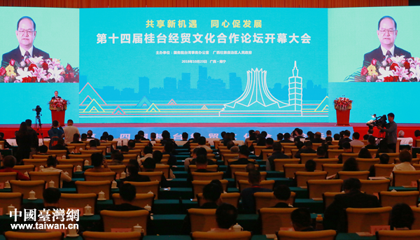 2018年10月23日,第十四屆桂臺(tái)經(jīng)貿(mào)文化合作論壇在廣西南寧開幕。(圖片來源:廣西臺(tái)辦)