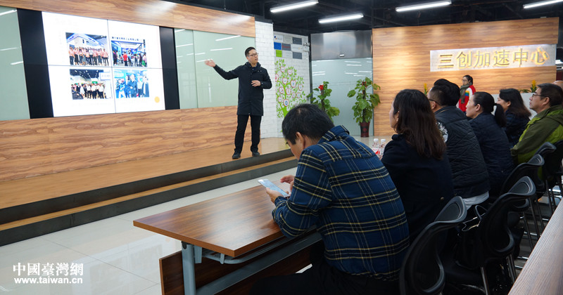 陳昱夫介紹“三創(chuàng)加速中心”扶持臺灣青年創(chuàng)業(yè)的情況。(圖片來源:廣西南寧市臺辦)