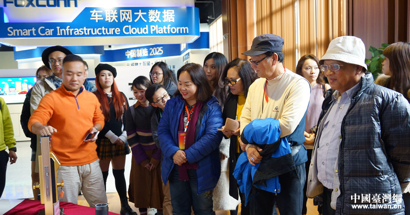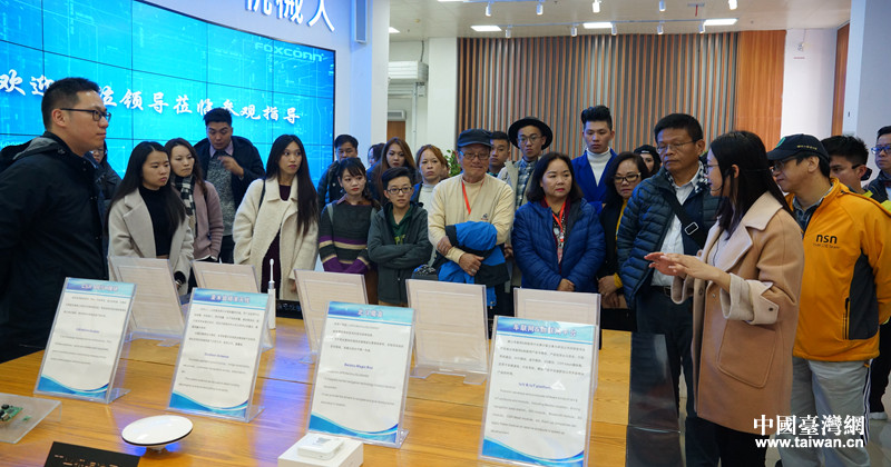 富士康南寧科技園工作人員向臺灣嘉賓介紹開發(fā)的智能產(chǎn)品。(圖片來源:廣西南寧市臺辦)