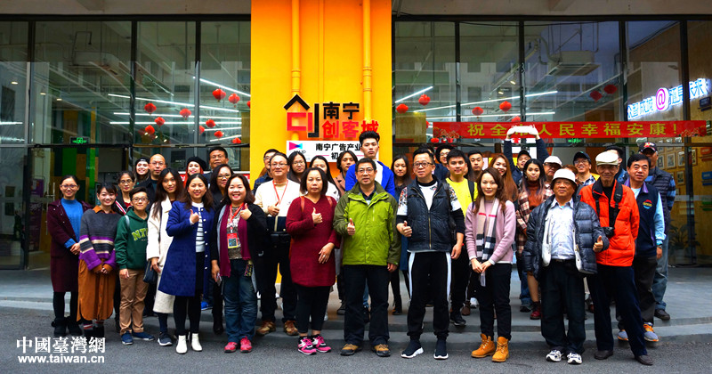 臺灣嘉賓在南寧創(chuàng)客城合影。(圖片來源:廣西南寧市臺辦)
