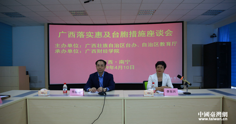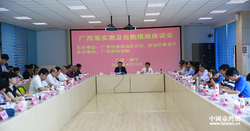 4月10日上午,廣西落實惠及臺胞措施座談會。(圖片來源:廣西臺辦)
