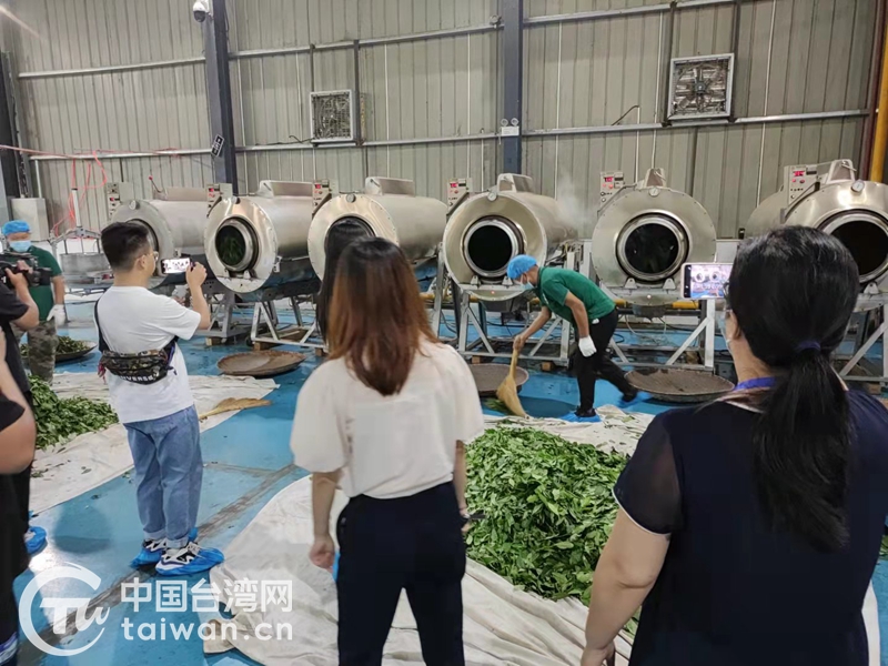 兩岸記者實地探訪了盛德來茶葉發展有限公司廠區,一路觀看采摘之后的茶葉,經歷從日光萎凋、搖青、炒茶,到揉茶、干燥、除梗的復雜工序,從而生產出將臺式烏龍茶制茶技術和信陽茶葉進行有機結合的“信陽式”烏龍茶。