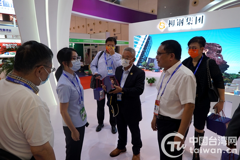 臺灣嘉賓觀摩東博會展覽(圖片來源:廣西臺辦)