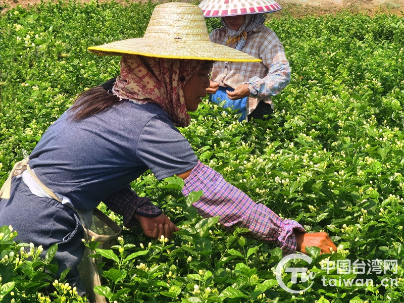 花農在采摘茉莉花(圖片來源:廣西橫州市臺辦)