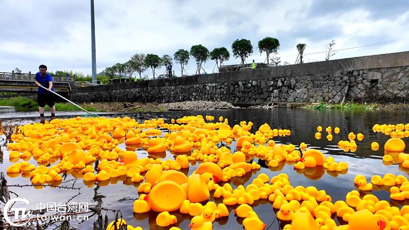 活動(dòng)結(jié)束后剩余小黃鴨被全部打撈起。(中國(guó)臺(tái)灣網(wǎng)發(fā))