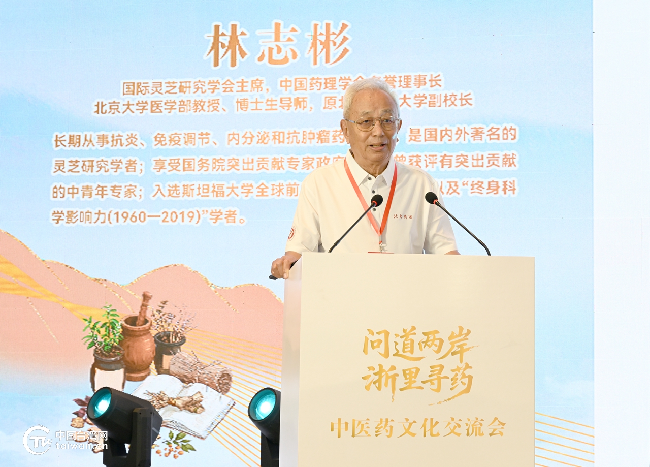 國際靈芝研究學會主席、中國藥理學會名譽理事長、北京大學醫學部教授、博士生導師,原北京醫科大學副校長林志彬交流發言。(中國臺灣網發)