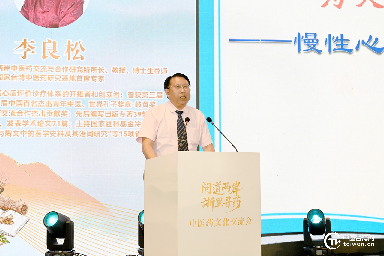 北京中醫藥大學海峽兩岸中醫藥交流與合作研究所所長、教授、博士生導師,國家臺灣中醫藥研究基地首席專家李良松交流發言。(中國臺灣網發)