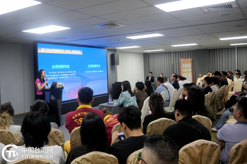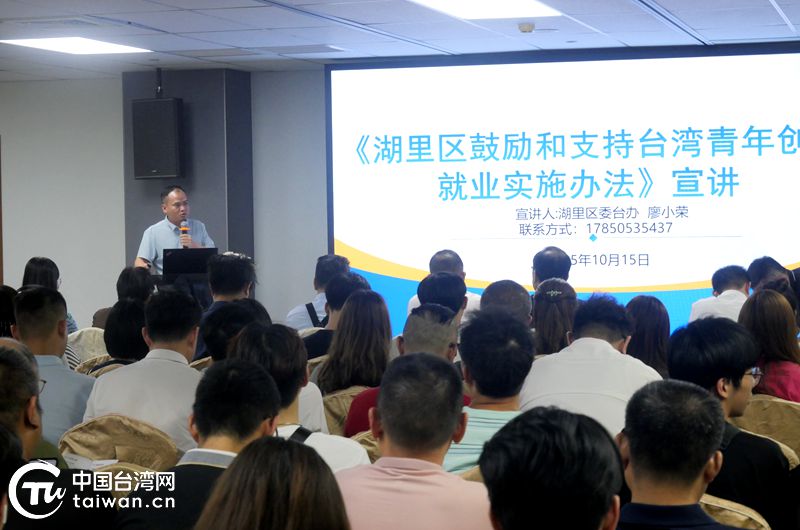 湖里區(qū)委臺(tái)辦現(xiàn)場(chǎng)宣講新修訂的臺(tái)青創(chuàng)業(yè)就業(yè)政策。(中國(guó)臺(tái)灣網(wǎng)發(fā))