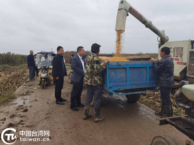 駐馬店市涉臺系統工作人員深入秋收一線幫助臺胞收玉米。(中國臺灣網發)