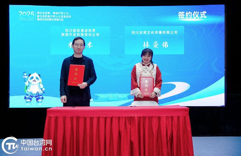在項目簽約儀式上,四川旅投漫話世界旅游開發有限責任公司與臺企四川志育文化傳播有限公司簽署研學項目開發合作協議。研學項目聯動熊貓基地、昭覺寺等周邊資源構建文旅閉環,助力動漫城打造年輕消費“引力場”,加速天府國際動漫城“產學研”一體化基地成型。以研學為紐帶,進一步深化兩岸文化交流,提升區域動漫產業影響力。