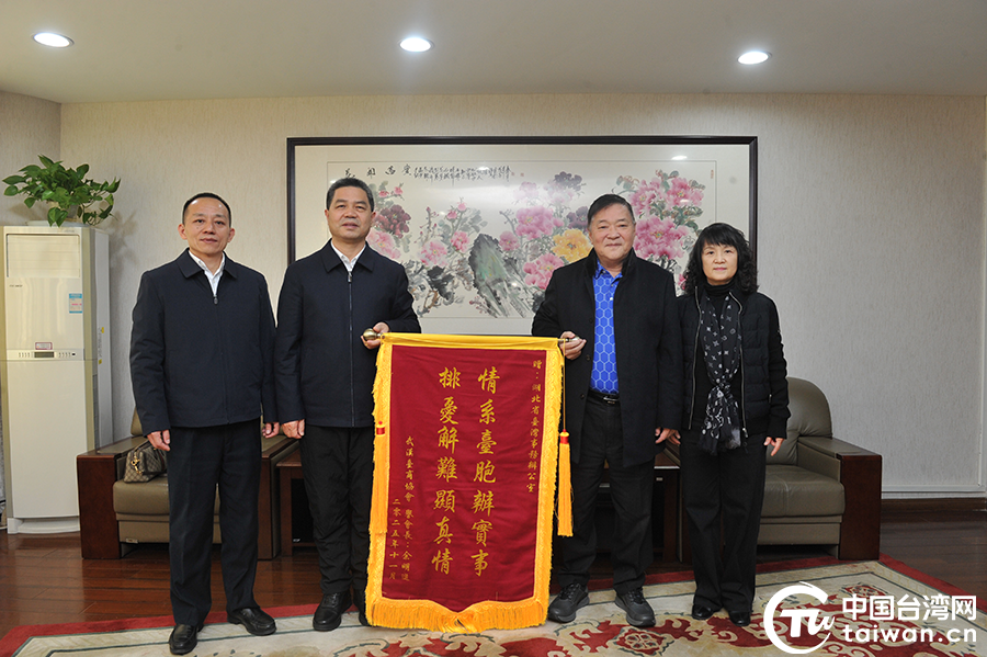 中國臺灣網11月21日訊 11月19日,武漢市臺協榮譽會長余明進專程到湖北省臺辦,贈送了“情系臺胞辦實事,排憂解難顯真情”錦旗,對省臺辦依法維護臺胞合法權益表示感謝。湖北省臺辦主任程良勝、副主任張丹青會見了余明進一行。