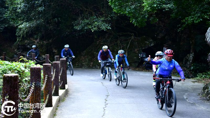 騎行隊(duì)伍在溪源庵騎行。(中國臺灣網(wǎng)發(fā))