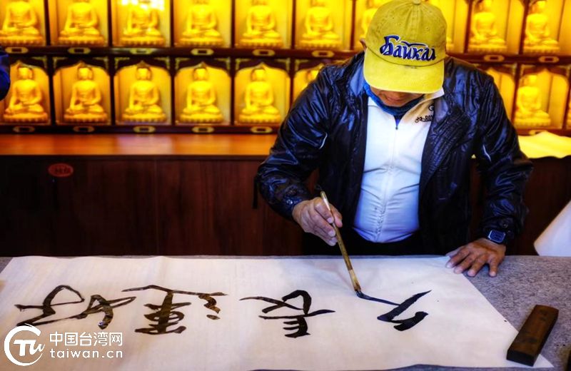 臺胞吳先生即興潑墨題字。(中國臺灣網(wǎng)發(fā))
