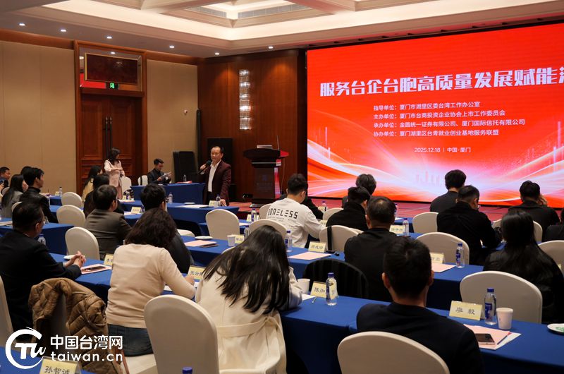 中國臺灣網12月22日訊 為搭建臺企臺胞與金融服務機構的溝通交流平臺,為臺資企業運用資本市場發展提供指導,協助臺胞普及金融知識、強化風險防范意識,引導投資者樹立價值投資理念,12月18日,服務臺企臺胞高質量發展賦能活動在廈門悅華酒店舉行。本次活動由廈門市臺商投資企業協會上市工作委員會、湖里區委臺辦共同組織,金圓統一證券有限公司、廈門國際信托有限公司承辦,廈門湖里區臺青就業創業基地服務聯盟協辦。