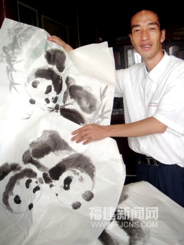 9月24日,福建泉州威遠(yuǎn)樓畫家吳培植先生潛心熊貓國畫創(chuàng)作,已經(jīng)畫了78幅“熊貓”作品的他現(xiàn)正在構(gòu)思一幅10米熊貓長卷。吳培植先生因畫大熊貓與海峽對岸鄉(xiāng)親結(jié)緣,他曾為金門縣政府畫《團(tuán)團(tuán)圓圓》、《合家歡》贈送給馬英九先生和吳伯雄先生。最近,受臺北有關(guān)方面的邀請,吳培植先生將在臺北舉辦“團(tuán)團(tuán)圓圓”百幅熊貓畫展。(記者傅丹丹)
