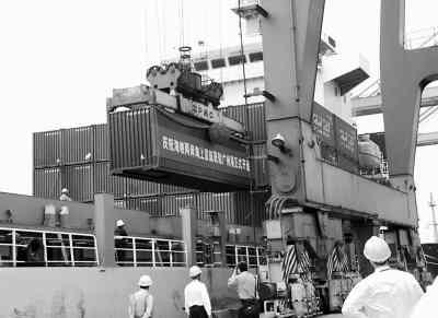 日前,海峽兩岸海上直航班輪開通儀式在廣州港廣州集裝箱碼頭舉行。這是臺灣與大陸實現“三通”以來,華南地區海峽兩岸海上直航新增的重要航線。據海關人員介紹,此航線班輪每周運行一班,航線為黃埔-汕頭-高雄-臺中。實現直航后,每標箱的運輸成本比從香港中轉至少減少80美元,整體物流成本比過去節省30%-40%。圖為通航儀式現場。