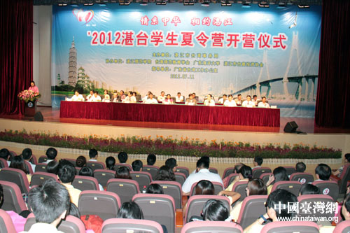 中國(guó)臺(tái)灣網(wǎng)7月11日湛江消息 今日上午,以“情系中華·相約湛江”為主題的2012湛臺(tái)學(xué)生夏令營(yíng)開營(yíng)儀式在廣東省湛江師范學(xué)院隆重舉行。來自臺(tái)灣臺(tái)中教育大學(xué)、中臺(tái)科技大學(xué)、屏東教育大學(xué)和湛江師范學(xué)院、廣東海洋大學(xué)等300多名師生參加了開營(yíng)儀式。