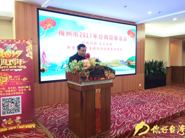 你好臺灣網1月21日消息(記者 曾萍 黃慧清 通訊員 廖榮榮)1月20日晚,梅州市委臺辦舉行了2017年臺商迎春會,邀請了七十多位梅州市臺商協會及梅州市臺聯會成員,歡聚一堂,喜迎新春,共謀發展。