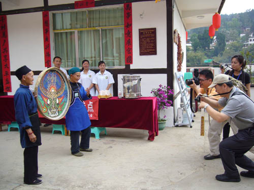 臺灣媒體記者們在貴陽采訪少數(shù)民族姐妹(貴陽市臺辦 李慶斌 攝)