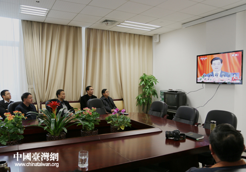 貴州省臺辦組織黨員干部收看收聽黨的十八大開幕式。(貴州省臺辦 梁琪 攝)