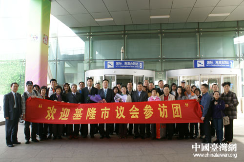 基隆市議會參訪團(tuán)一行在機(jī)場合影留念。圖片來源:濟(jì)南市臺辦